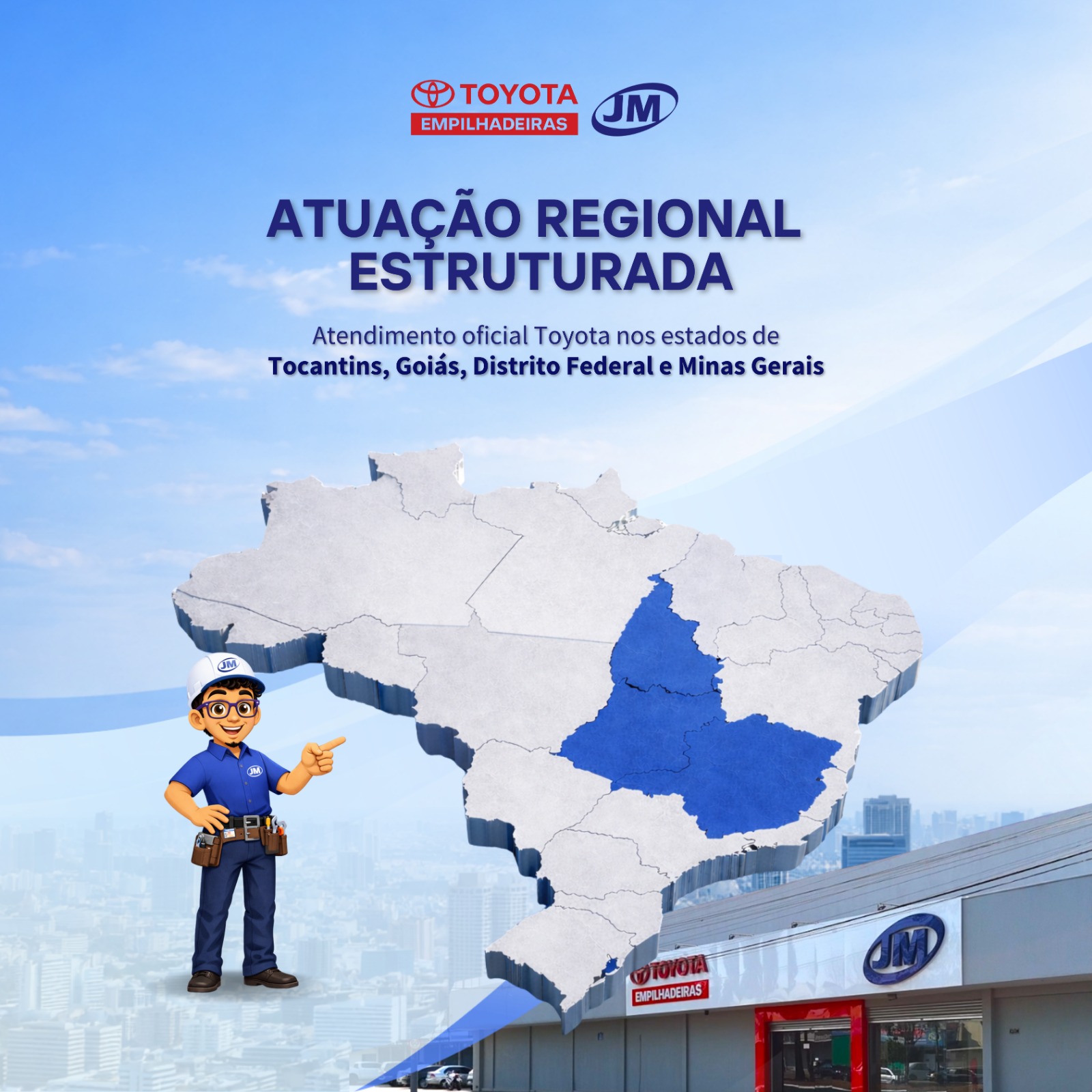 A parceria garante aos clientes da JM equipamentos líderes de mercado mundial, referência pela alta tecnologia, excelência de produtos e segurança que a Toyota oferece.